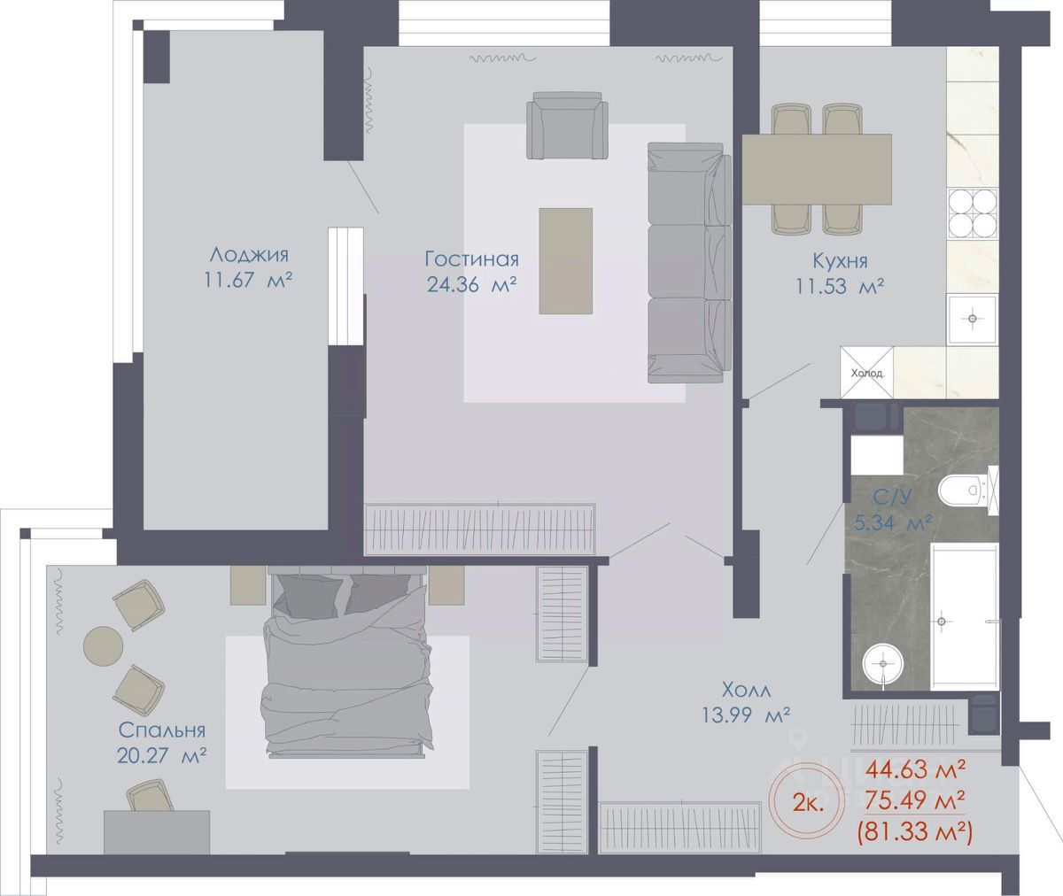 Продаётся 2-комнатная квартира в строящемся доме (Дом 1), срок сдачи: IV-кв. 2025, общей площадью 81.4 кв.м., на 7 этаже. Новый жилой комплекс "48" от группы компаний "Семья" расположен по адресу: г. Воронеж, по ул. пр-кт Труда.