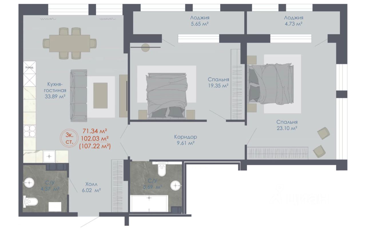 107,42 м²