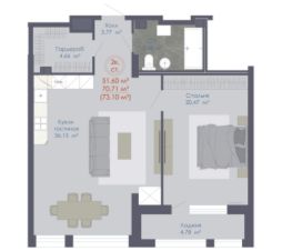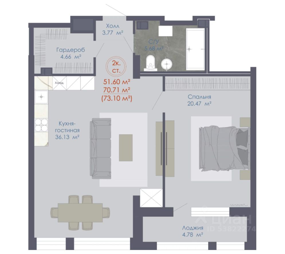 Продаётся 2-комнатная квартира в строящемся доме (Дом 1), срок сдачи: IV-кв. 2025, общей площадью 73.1 кв.м., на 6 этаже. Новый жилой комплекс "48" от группы компаний "Семья" расположен по адресу: г. Воронеж, по ул. пр-кт Труда.