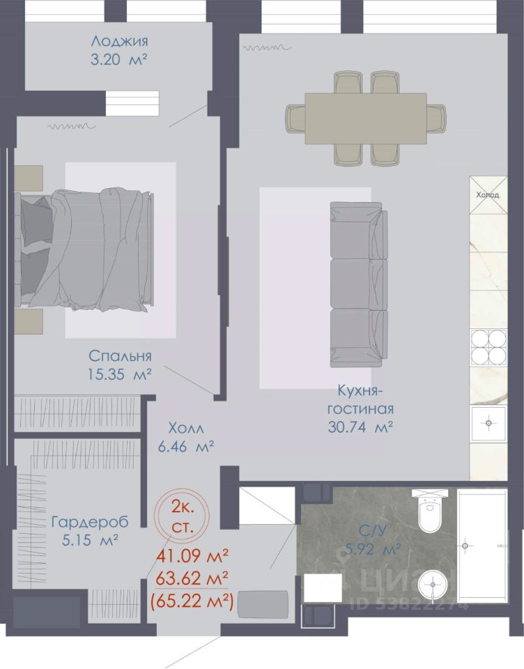 Продаётся 2-комнатная квартира в строящемся доме (Дом 1), срок сдачи: IV-кв. 2025, общей площадью 65.58 кв.м., на 13 этаже. Новый жилой комплекс "48" от группы компаний "Семья" расположен по адресу: г. Воронеж, по ул. пр-кт Труда.