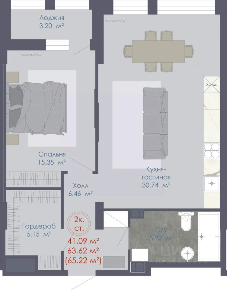 Продаётся 2-комнатная квартира в строящемся доме (Дом 1), срок сдачи: IV-кв. 2025, общей площадью 65.58 кв.м., на 15 этаже. Новый жилой комплекс "48" от группы компаний "Семья" расположен по адресу: г. Воронеж, по ул. пр-кт Труда.