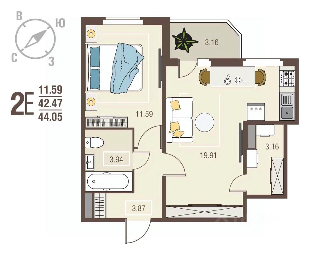 Продаётся 1-комнатная квартира в сданном доме (Позиция 12), срок сдачи: I-кв. 2025, общей площадью 44.05 кв.м., на 1 этаже. О ПРОЕКТЕ