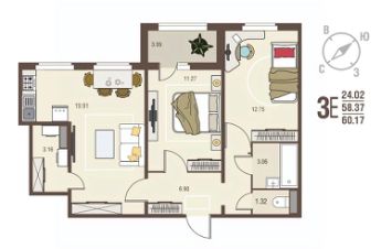 Продаётся 2-комнатная квартира в сданном доме (Позиция 12), срок сдачи: I-кв. 2025, общей площадью 60.17 кв.м., на 1 этаже. О ПРОЕКТЕ