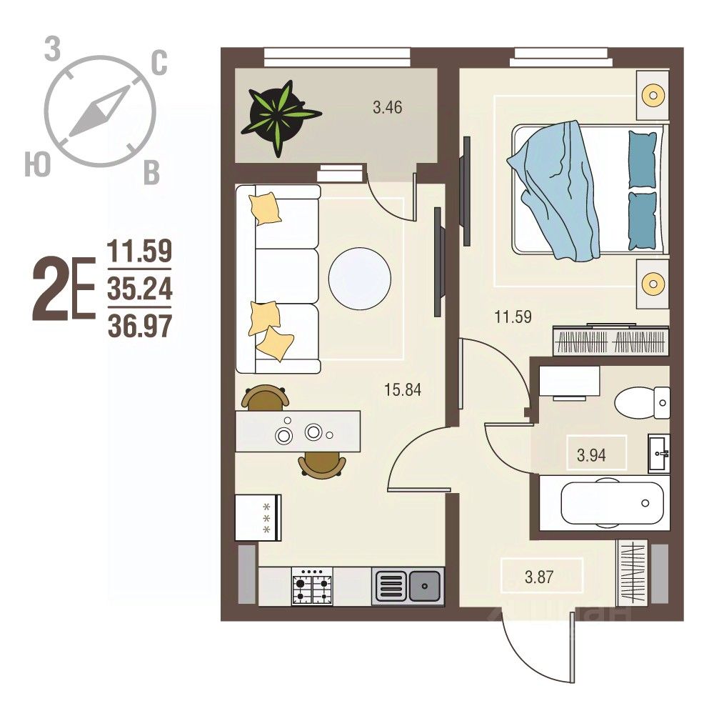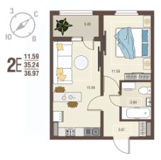Продаётся 1-комнатная квартира в сданном доме (Позиция 12), срок сдачи: I-кв. 2025, общей площадью 36.97 кв.м., на 9 этаже. О ПРОЕКТЕ