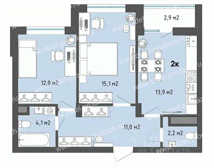 Квартиры сдаются в предчистовой отделке "white box" - гипсовая штукатурка, стяжка пола, разводка электрики.
