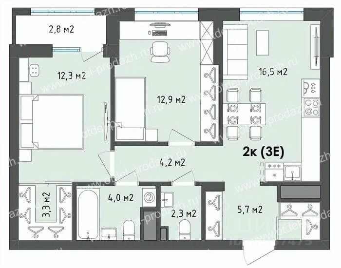 Квартиры сдаются в предчистовой отделке "white box" - гипсовая штукатурка, стяжка пола, разводка электрики.