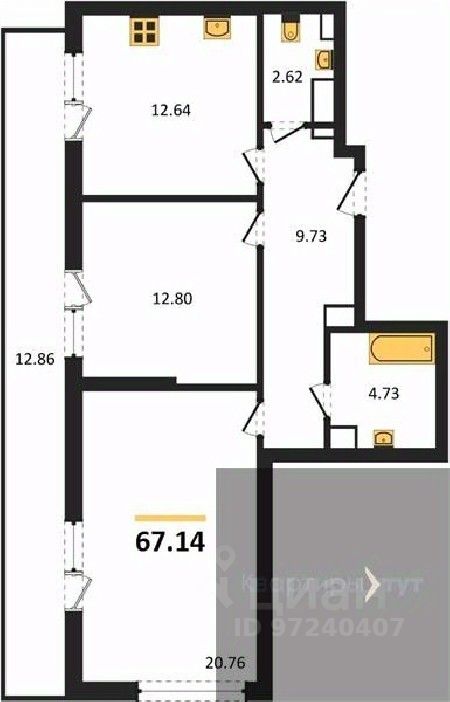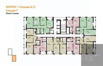 Квартира: 2 к 67,14 кв.м., 5 этаж в комплексе Бунин, 3 очередь, корп.1 (Секции 6,7), сдача: 2кв. , этажей: 23, адрес Воронеж г., Московский пр., д. 136, Застройщик: ВДК.