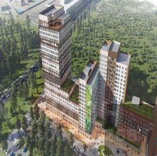 Разнообразия фасадов также рассчитывают добиться за счёт разного размера и ритма оконных проёмов. Особый акцент сделают на кровлю. В некоторых местах там оборудуют террасы. Перед домом будет расположен сквер имени Бунина. Внутри дворовая территория огорожена забором, доступ внутрь осуществляется по ключу от домофона. Проезд на территорию двора допускается только для пожарной техники, а сквозные подъезды позволят жителям комфортно выгружать покупки из автомобилей у дверей подъезда. По территории будет дворовое освещение, которое в темное время суток будет создавать комфортную и уютную атмосферу.
