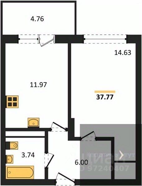 Квартира: 1 к 37,77 кв.м., 13 этаж в комплексе Титул, 2 очередь, корп.2 (Секция 2), сдача: 4кв. , этажей: 18, адрес Воронеж г., Московский пр., д. 66, Застройщик: Инвестжилстрой.