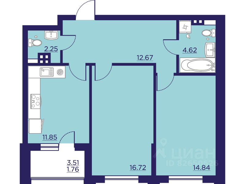 Общая площадь64,71 м²