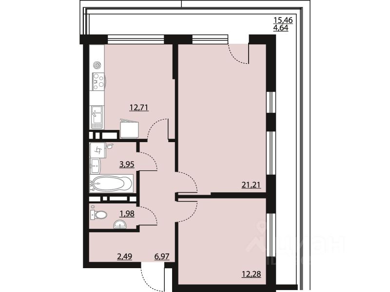 Продается 2-комн. квартира, 66,26 м²