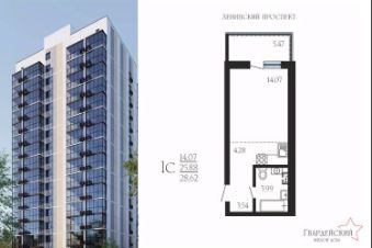 Продаётся студия в строящемся доме (Дом 1), срок сдачи: III-кв. 2026, общей площадью 28.3 кв.м., на 13 этаже. Новый жилой комплекс "Гвардейский" от Специализированного застройщика "Стройинвест" расположен по адресу: г .Воронеж, по ул. пер. Гвардейский.