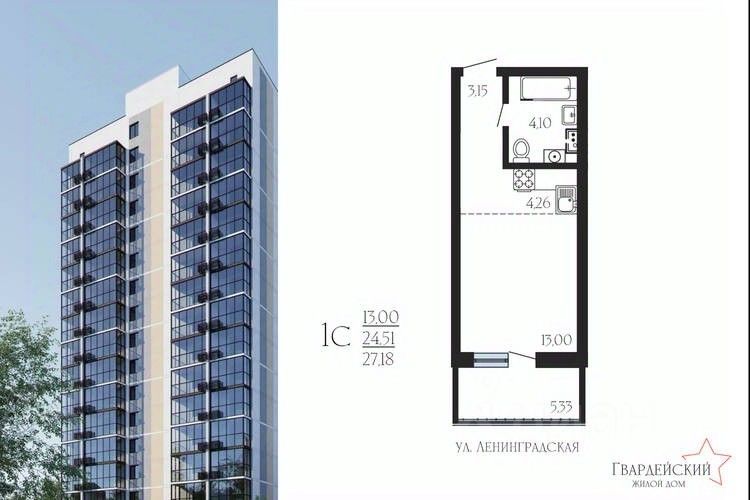 Продаётся студия в строящемся доме (Дом 1), срок сдачи: III-кв. 2026, общей площадью 27 кв.м., на 7 этаже. Новый жилой комплекс "Гвардейский" от Специализированного застройщика "Стройинвест" расположен по адресу: г .Воронеж, по ул. пер. Гвардейский.
