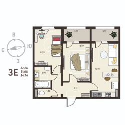 Продаётся 2-комнатная квартира в строящемся доме (Позиция 13), срок сдачи: IV-кв. 2025, общей площадью 54.74 кв.м., на 8 этаже. О ПРОЕКТЕ