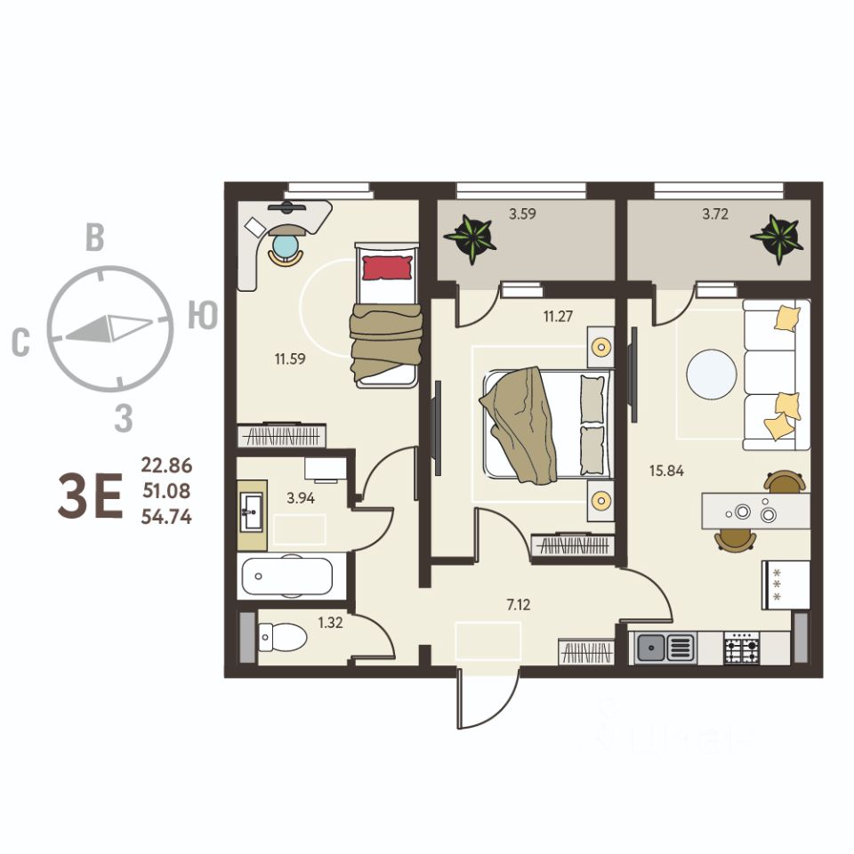 Продаётся 2-комнатная квартира в строящемся доме (Позиция 13), срок сдачи: IV-кв. 2025, общей площадью 54.74 кв.м., на 11 этаже. О ПРОЕКТЕ