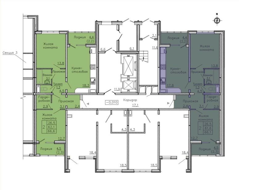 Кухня-гостиная, Спальни на разные стороны, Гардеробная, Лоджия из кухни.