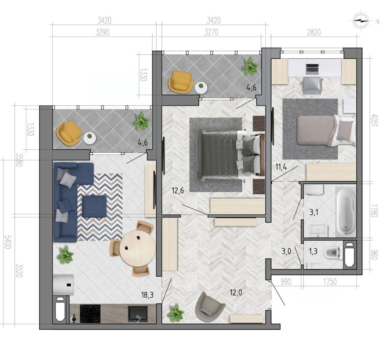 18,3 м²