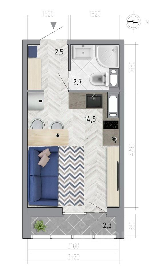 Удобная планировка, Уютная, Квартира - студия.