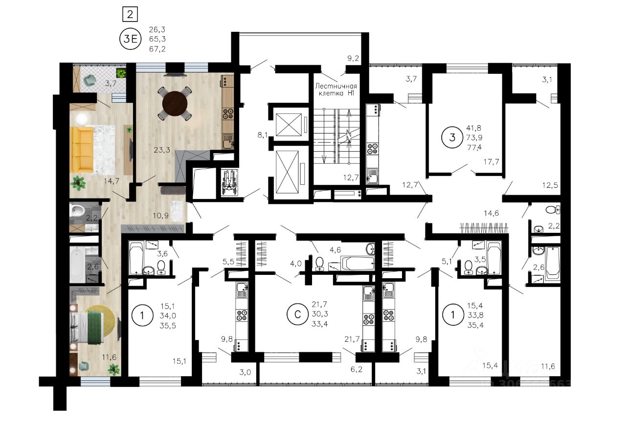 3 к евро, Кухня-гостиная, Две спальни Нoвый дом нa Лeнинскoм проспекте! Пoз.3 по ул.Pокоccовского, 47 - жилoй дoм c яpкoй aрхитектурой pядом c ТРЦ "Максимир"! Один из оснoвныx плюcoв прoeкта этo планировки кваpтир, в котopых воплощены сoвpеменныe идeи организации внутрeннего прoстpaнcтва: - плaнировки eвpоформата - просторные кухни-гостиные - больше места для хранения повседневных вещей и расстановки бытовой техники - выбор варианта отделки (базовая, 100%) - в некоторых квартирах предусмотрено панорамное остекление, чтобы вид на город был еще лучше! Строительство жилого 21-этажного жилого дома осуществляется в развитом районе, обеспеченном богатой транспортной и социальной инфраструктурой. Расположение ЖК: Железнодорожный район г. Воронежа 850 м до ТРЦ "МАКСИМИР" 2 км до администрации Ж/д района Примерное время в пути до центра города Авто: 15 минут до проспекта Революции (7 км) Автобус: 30 минут до ЮВЖД Остановки: Ост. ул.Рокоссовского - 100м Ост. Школа - 400м Для детей: Средние общеобразовательные школы 19 (14 мин), 71 (14 мин), 105 (20 мин) Детские сады (Детский сад 104 (Ленинский проспект 191),128 (Ленинский проспект 177а), 125 (ул.25 Января 44), 43 (ул.Переверткина 50), 96 (Ленинский проспект 175) Детская школа искусств 5 (Ленинский проспект, 207) СШОР 10 (Ленинский проспект 197а) Детский спортивно-образовательный цент (Ленинский проспект 201) Здоровье: Поликлиника 12 (Зои Космодемьянской, 17) - 1,5 км Детский оздоровительно развивающий центр "Солнышко" (Зои Космодемьянской, 19) - 1,5 км ТРЦ : ТРЦ "Максимир" (Ленинский проспект 174п) - 850м, 10 минут ходьбы Кафе, рестораны: Пицца Куба - 300м Бургер Кинг - 10 минут ходьбы Кулинарная лавка Варвары - 9 минут ходьбы Додо Пицца - 14 минут Veranda - 15 минут ходьбы Томато ( Ленинский проспект 174п) - 10 минут ходьбы Спорт: АLЕХ FIТNЕSS ( Ленинский проспект 174п) - 850м Невесомость-Воронеж -батутный центр развлечений (Ленинский проспект 174п) - 800м Магазины: Чижик - 200м, Пятерочка - 100м Условия покупки: Действует льготная ипотека. Помощь в получении одобрения от банков. Отделка В жилом доме предусмотрены два стандарта отделки квартир по Вашему желанию. Условия покупки Если при покупке квартиры Вы планируете частично использовать кредитные средства, наш специалист поможет Вам подобрать подходящую ипотечную программу и отправит заявку в банк. Жилой дом по адресу: г. Воронеж. Многоэтажный многоквартирный жилой дом со встроенными нежилыми помещениями и крышной котельной по ул.Рокоссовского, 47, Поз.3. Разрешение на строительство 36-34-076-2023 от 07 августа 2023 года выдано Администрацией городского округа город Воронеж. Застройщик ООО СПЕЦИАЛИЗИРОВАННЫЙ ЗАСТРОЙЩИК "Партнер". Реализация квартир осуществляется застройщиком по договорам участия в долевом строительстве. 214 ФЗ. Проектная декларация на сайте наш.дом.рф Не является публичной офертой. Информацию о квартирах и их стоимость уточняйте у менеджеров отдела по работе с недвижимостью.