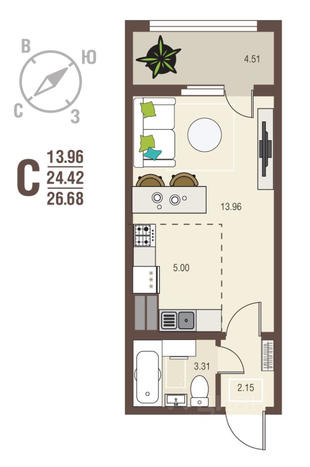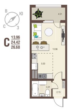 Продаётся студия в сданном доме (Позиция 12), срок сдачи: I-кв. 2025, общей площадью 26.68 кв.м., на 6 этаже. О ПРОЕКТЕ