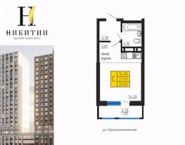 Продаётся студия в строящемся доме (Дом 2), срок сдачи: IV-кв. 2027, общей площадью 29.82 кв.м., на 10 этаже. Жилой комплекс "Никитин" расположен в Ленинском районе города Воронеж. Он представляет собой современный жилой комплекс, который включает в себя несколько многоэтажных домов, обустроенных территорию и парковочные места.