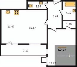 Квартира: 1 к 62,72 кв.м., 7 этаж в комплексе Финский Квартал, 1 очередь, корп.2, сдача: 4кв. , этажей: 10, адрес Солнечный п., Кленовая ул., д. 2, Застройщик: ВДК.