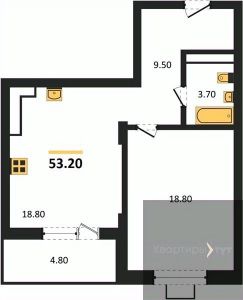 Квартира: 1 к 53,20 кв.м., 4 этаж в комплексе Ключи CLUB, 1 очередь, корп.1, сдача: 2кв. , этажей: 15, адрес Воронеж г., Содружества бул., д. 5, Застройщик: Новый код.