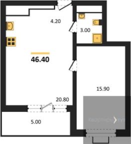 Квартира: 1 к 46,40 кв.м., 4 этаж в комплексе Ключи CLUB, 1 очередь, корп.1, сдача: 2кв. , этажей: 15, адрес Воронеж г., Содружества бул., д. 52 корп. 5, Застройщик: Новый код.