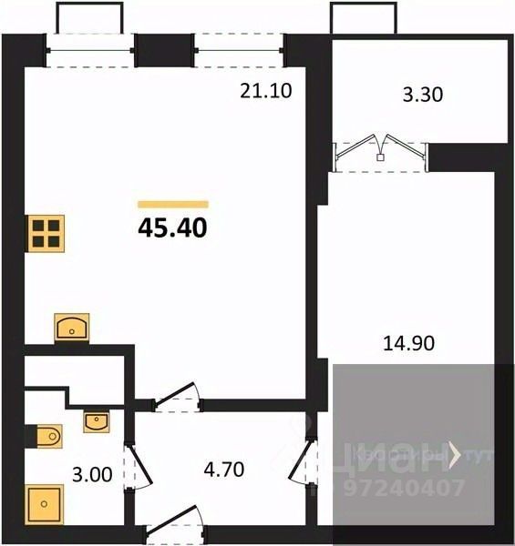 Квартира: 1 к 45,40 кв.м., 3 этаж в комплексе Ключи CLUB, 1 очередь, корп.1, сдача: 2кв. , этажей: 15, адрес Воронеж г., Содружества бул., д. 52 корп. 5, Застройщик: Новый код.