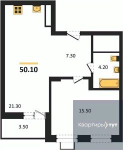 Квартира: 1 к 50,10 кв.м., 3 этаж в комплексе Ключи CLUB, 1 очередь, корп.1, сдача: 2кв. , этажей: 15, адрес Воронеж г., Содружества бул., д. 52 корп. 5, Застройщик: Новый код.