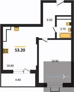 Квартира: 1 к 53,20 кв.м., 3 этаж в комплексе Ключи CLUB, 1 очередь, корп.1, сдача: 2кв. , этажей: 15, адрес Воронеж г., Содружества бул., д. 52 корп. 5, Застройщик: Новый код.
