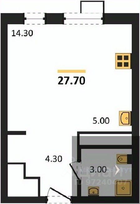 Студия: 27,70 кв.м., 8 этаж в комплексе Ритм, 1 очередь, корп.1 (секции 1-2), сдача: 2кв. , этажей: 11, адрес Воронеж г., Содружества бул., д. 6, Застройщик: Инвестжилстрой.