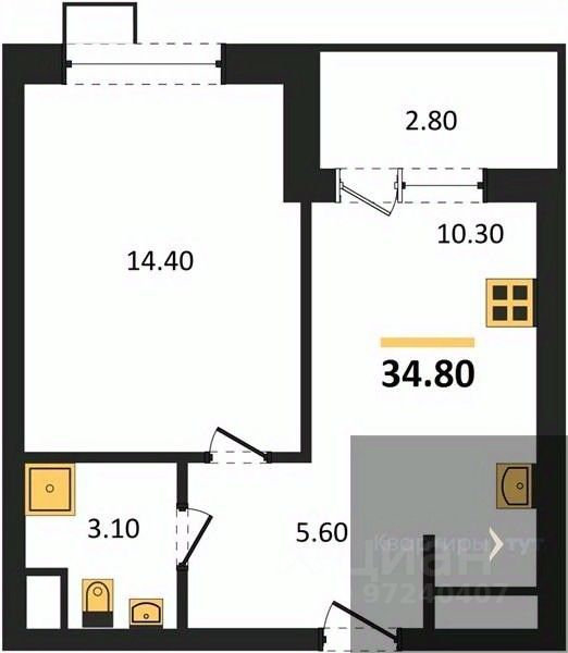Квартира: 1 к 34,90 кв.м., 10 этаж в комплексе Ритм, 1 очередь, корп.1 (секции 1-2), сдача: 2кв. , этажей: 11, адрес Воронеж г., Содружества бул., д. 6, Застройщик: Инвестжилстрой.