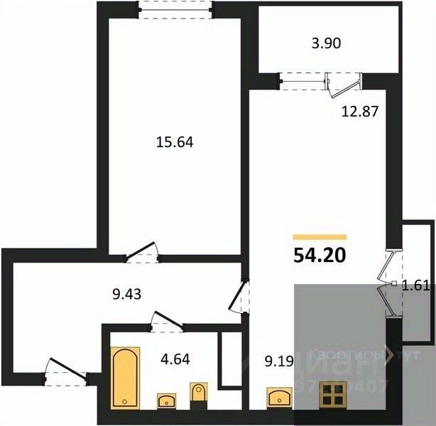 Квартира: 1 к 53,98 кв.м., 11 этаж в комплексе Городские сады, 2 очередь, корп.1, сдача: 4кв. , этажей: 18, адрес Воронеж г., Ломоносова ул., , Застройщик: ВДК.