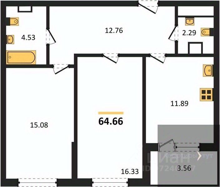 Квартира: 2 к 64,45 кв.м., 4 этаж в комплексе Городские сады, 2 очередь, корп.1, сдача: 4кв. , этажей: 18, адрес Воронеж г., Ломоносова ул., , Застройщик: ВДК.