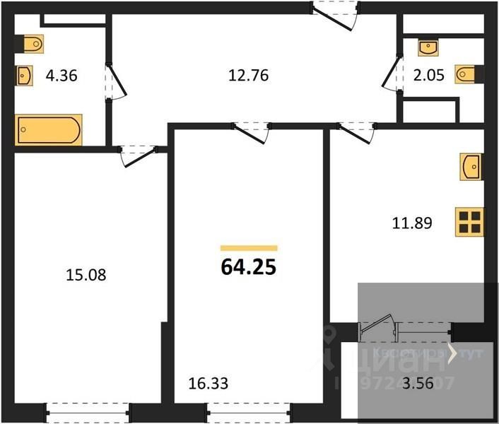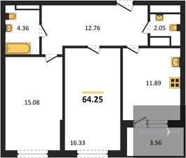 Квартира: 2 к 64,05 кв.м., 15 этаж в комплексе Городские сады, 2 очередь, корп.1, сдача: 2кв. , этажей: 18, адрес Воронеж г., Ломоносова ул., , Застройщик: ВДК.