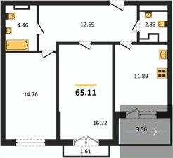 Квартира: 2 к 64,91 кв.м., 6 этаж в комплексе Городские сады, 2 очередь, корп.1, сдача: 4кв. , этажей: 18, адрес Воронеж г., Ломоносова ул., , Застройщик: ВДК.