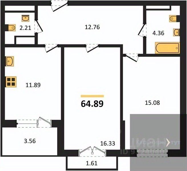 Квартира: 2 к 64,57 кв.м., 13 этаж в комплексе Городские сады, 2 очередь, корп.1, сдача: 2кв. , этажей: 18, адрес Воронеж г., Ломоносова ул., , Застройщик: ВДК.