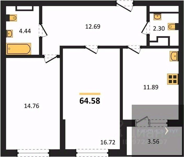 Квартира: 2 к 64,26 кв.м., 8 этаж в комплексе Городские сады, 2 очередь, корп.1, сдача: 4кв. , этажей: 18, адрес Воронеж г., Ломоносова ул., , Застройщик: ВДК.