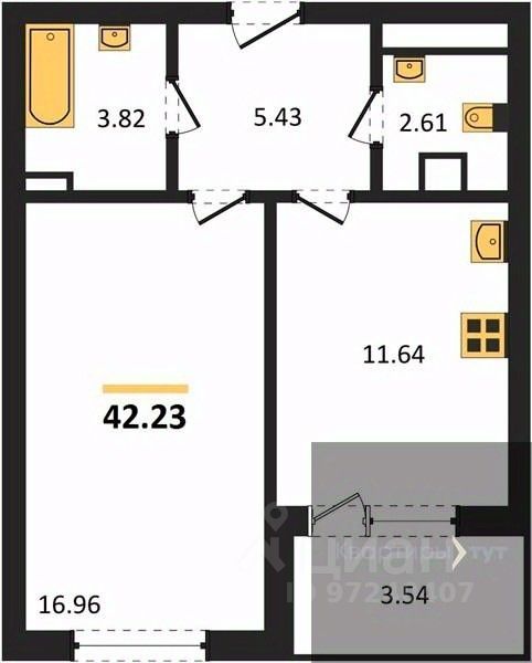 Квартира: 1 к 41,10 кв.м., 2 этаж в комплексе Городские сады, 2 очередь, корп.1, сдача: 4кв. , этажей: 18, адрес Воронеж г., Ломоносова ул., , Застройщик: ВДК.