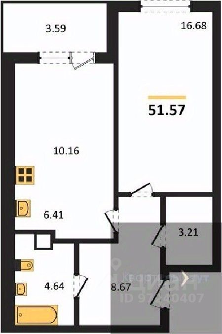 Квартира: 1 к 51,17 кв.м., 4 этаж в комплексе Городские сады, 2 очередь, корп.1, сдача: 4кв. , этажей: 18, адрес Воронеж г., Ломоносова ул., , Застройщик: ВДК.