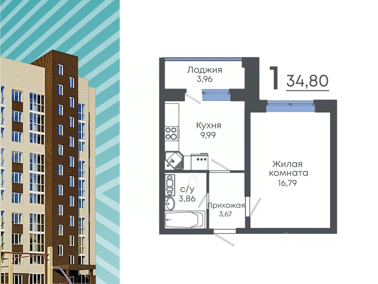 Общая площадь34,5 м²