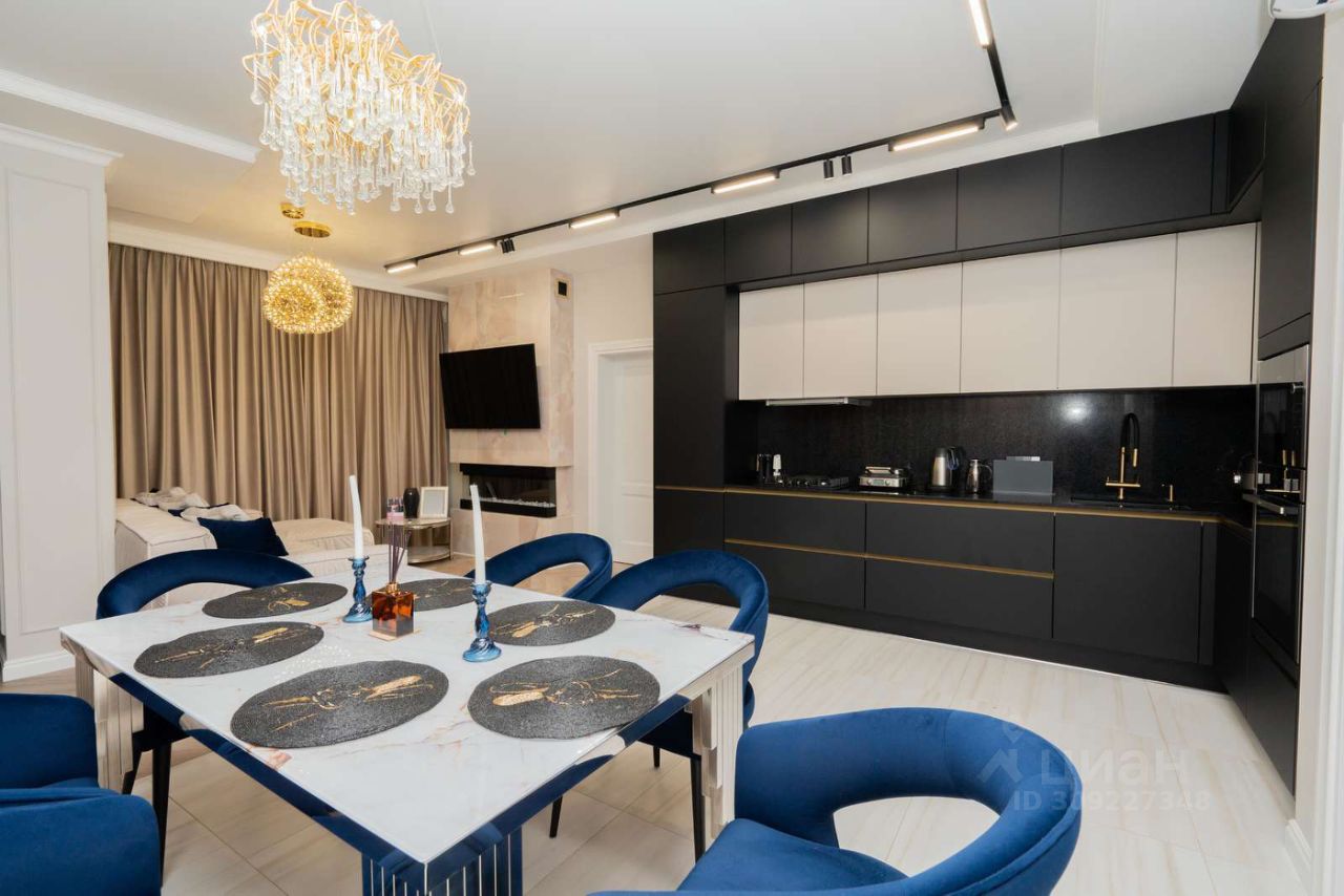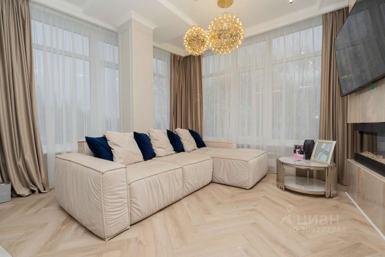 Высота потолков 3 метра, что создаёт ощущение простора и свободы. Общая площадь квартиры 145,5 кв. м, жилая площадь 65 кв. м, площадь кухни 35 кв. м.