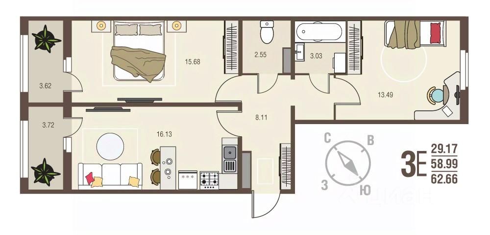 Продаётся 2-комнатная квартира в сданном доме (Позиция 12), срок сдачи: I-кв. 2025, общей площадью 62.66 кв.м., на 3 этаже. О ПРОЕКТЕ