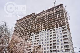 В доме 27 этажей, он монолитно-кирпичный.
