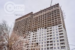 В доме 27 этажей, он монолитно-кирпичный.