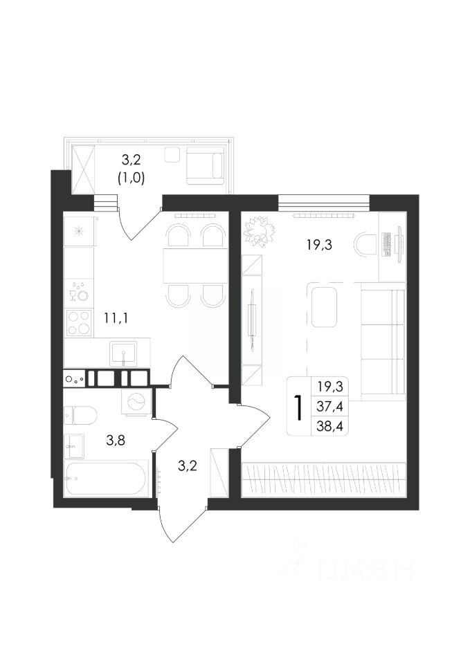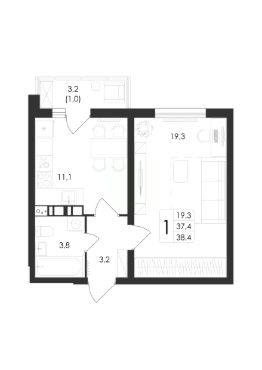 Общая площадь38,4 м²