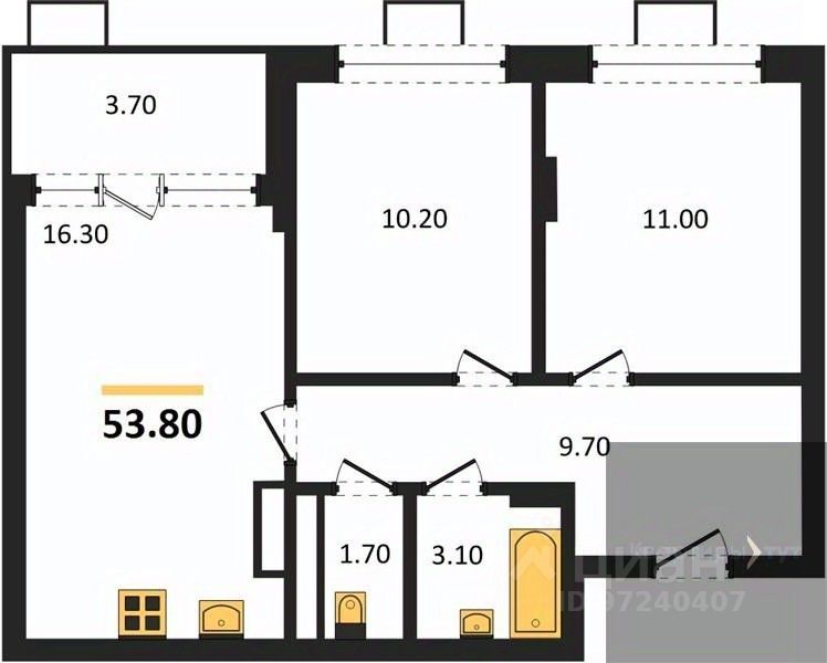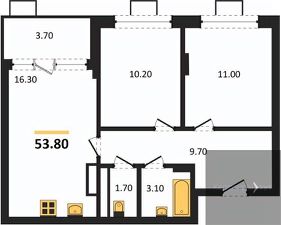 Квартира: 2 к 53,80 кв.м., 9 этаж в комплексе Ключи CLUB, 2 очередь, корп.2, сдача: 4кв. , этажей: 14, адрес Воронеж г., Остужева ул., д. 52/5, Застройщик: Новый код.