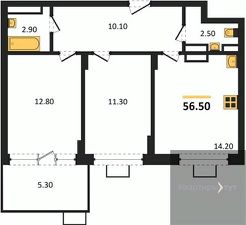 Квартира: 2 к 56,50 кв.м., 6 этаж в комплексе Ключи CLUB, 2 очередь, корп.2, сдача: 2кв. , этажей: 14, адрес Воронеж г., Остужева ул., д. 52/5, Застройщик: Новый код.