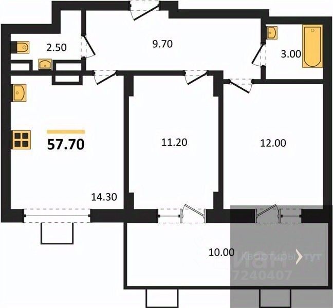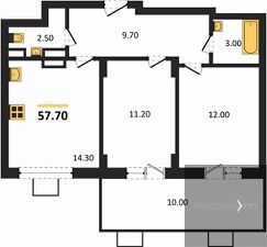 Квартира: 2 к 57,70 кв.м., 10 этаж в комплексе Ключи CLUB, 2 очередь, корп.2, сдача: 2кв. , этажей: 14, адрес Воронеж г., Остужева ул., д. 52/5, Застройщик: Новый код.